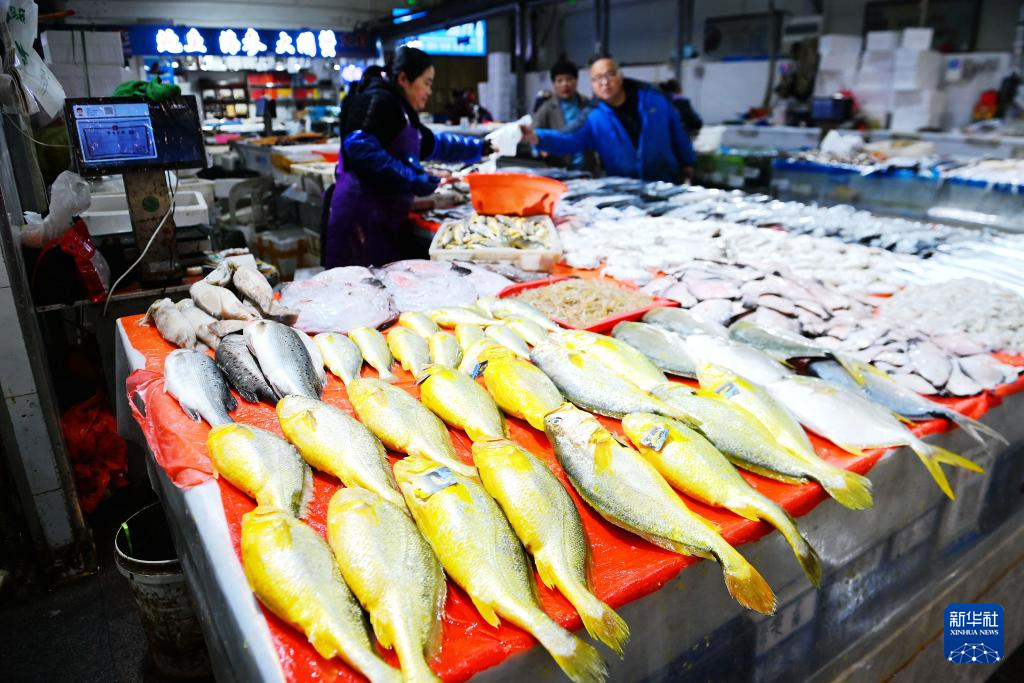 12月9日,市民在山东青岛一农贸市场选购海鲜。