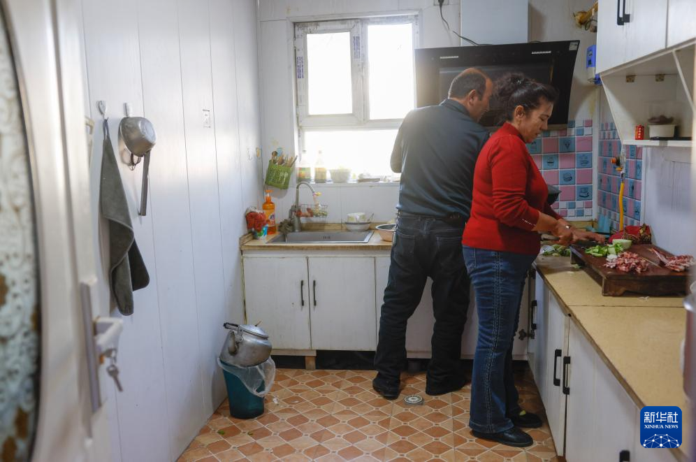 麦麦提和妻子回到家准备午饭(12月4日摄)。