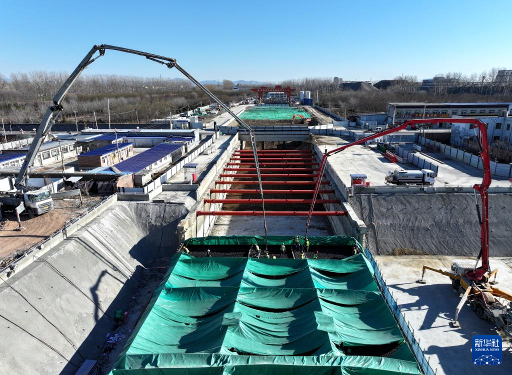 12月9日拍摄的北京轨道交通22号线(平谷线)河北段高楼站建设现场(无人机照片)。