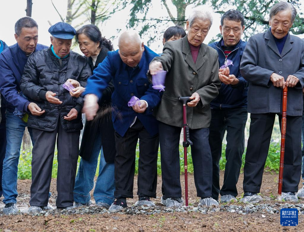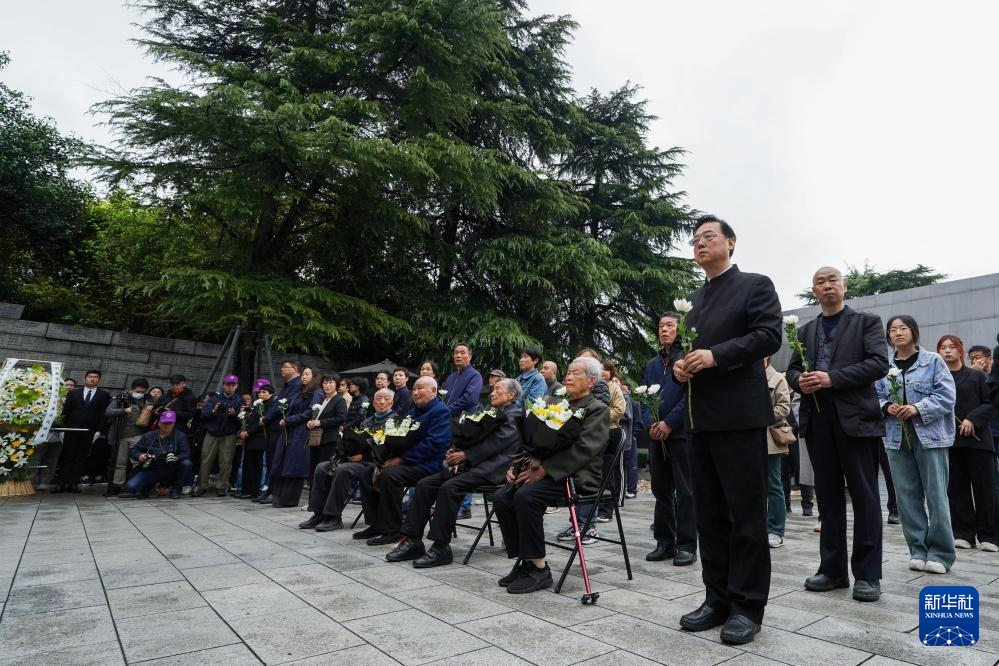 艾义英(前排右二)在侵华日军南京大屠杀遇难同胞纪念馆参加清明祭仪式(2024年4月3日摄)。