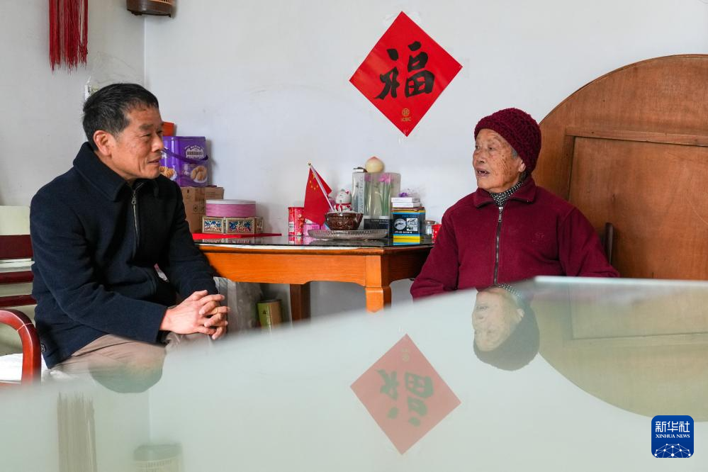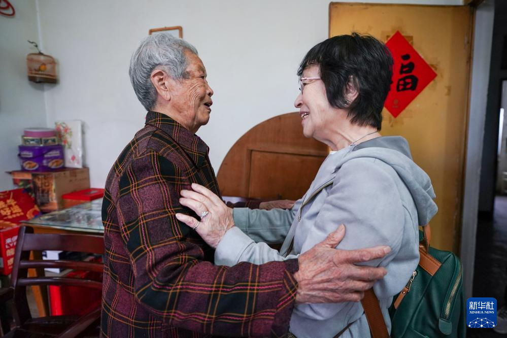 日本铭心会会长松冈环在南京看望艾义英(左)(2024年4月5日摄)。