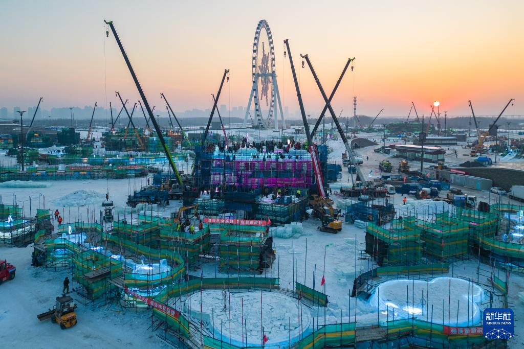 日前,第二十六届哈尔滨冰雪大世界开启冰建施工,万余名冰建工人、近千台机械作业设备陆续进场,在保障安全和工程质量的前提下,全力推进景观建设。