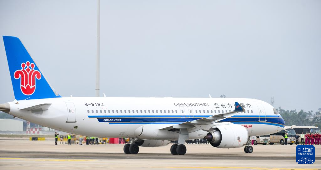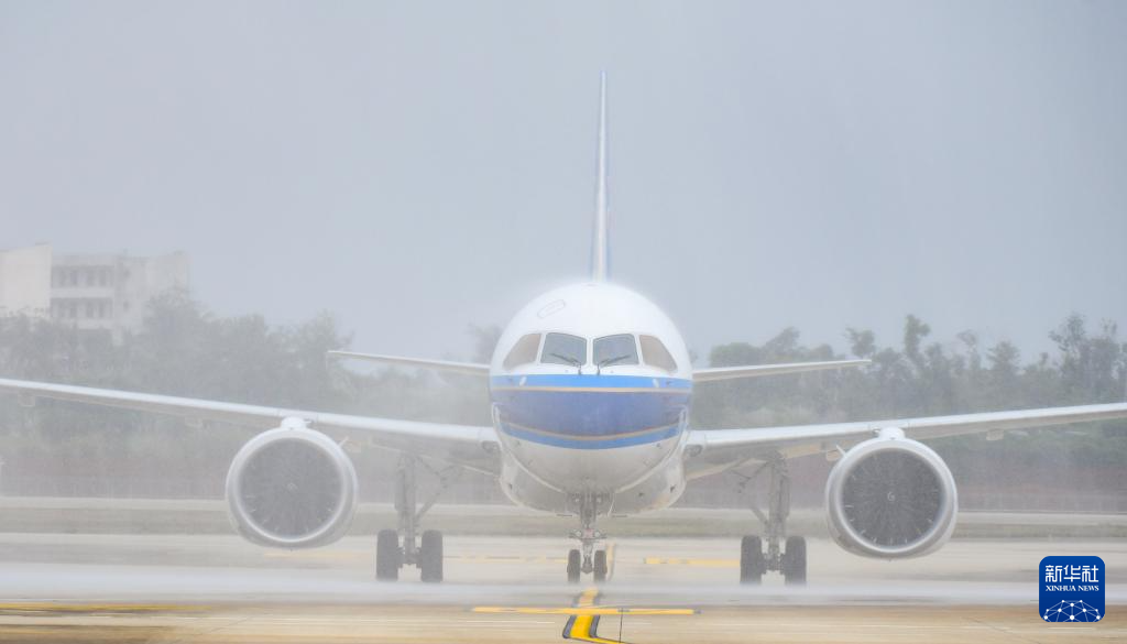 12月11日,由C919执飞的中国南航CZ6786航班在海口美兰国际机场降落。