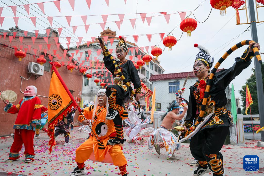 12月9日,广东省汕头市潮阳区贵屿镇玉窖村举办民俗活动,5岁女童庄恩琪手持英歌槌,跟随鼓点节奏与当地的英歌队员一同起舞,动作有力且充满韵律,赢得了在场观众阵阵掌声。