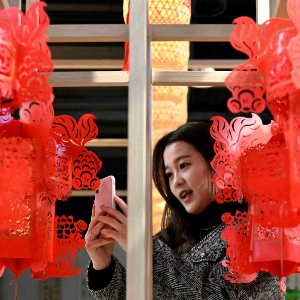 12月11日,游客在河北博物院文化创意空间参观拍照。