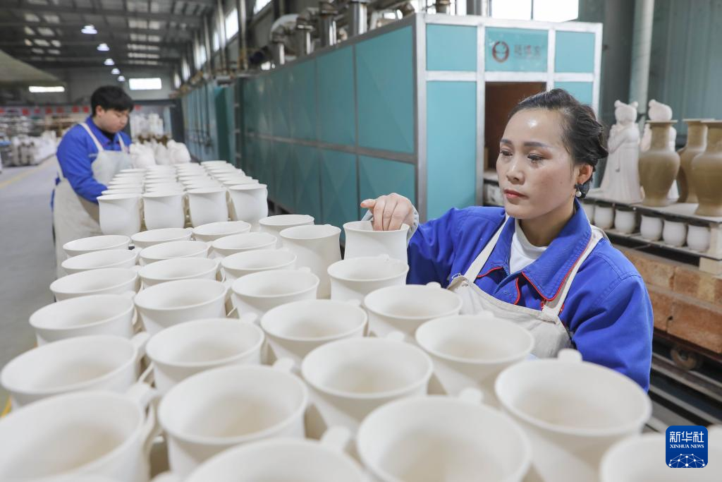 12月12日,河南省平顶山市宝丰县汝窑陶瓷产业园内一家汝瓷企业的工人在装窑。