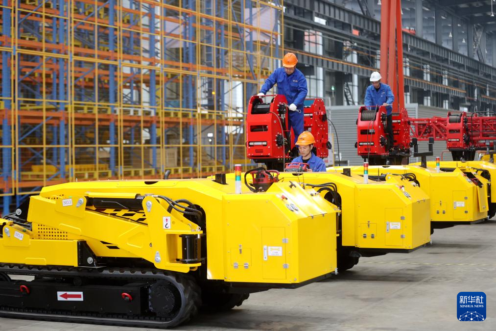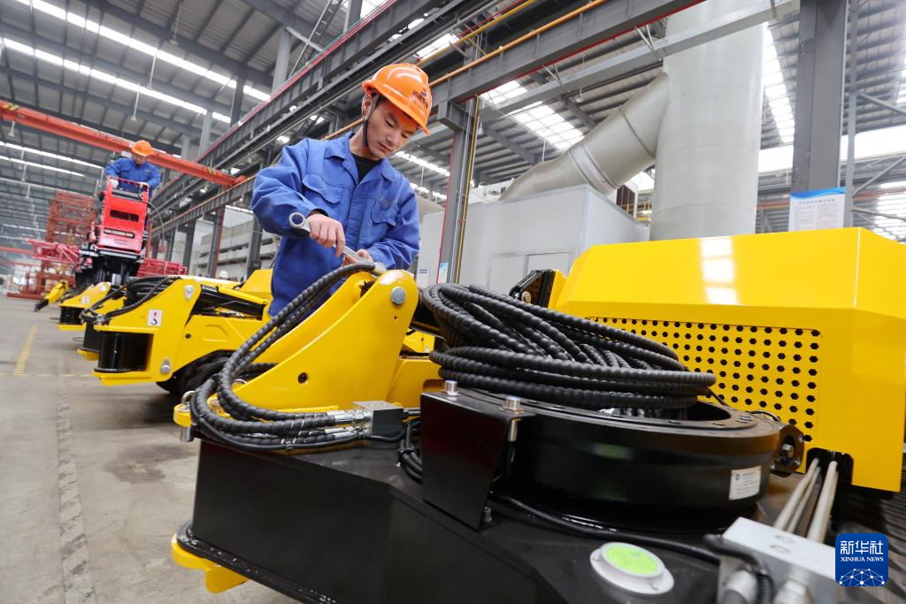 12月12日,位于浙江省湖州市德清县雷甸镇的浙江省建设工程机械集团有限公司德清精益智能工厂,工人在赶制履带式轻型组塔装置产品。