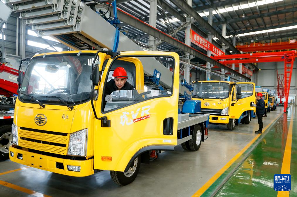 12月12日,青岛九合重工机械有限公司的员工在调试出口到海外市场的特种车。