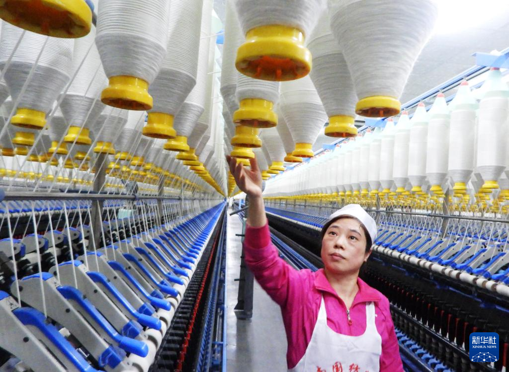 12月12日,青岛即发纺织科技有限公司的工人在智慧纺纱生产线上生产高端纤维。
