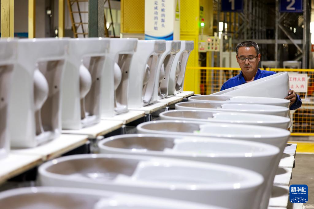 12月12日,河北省唐山市丰南区一家卫浴生产企业的工人在生产车间工作。