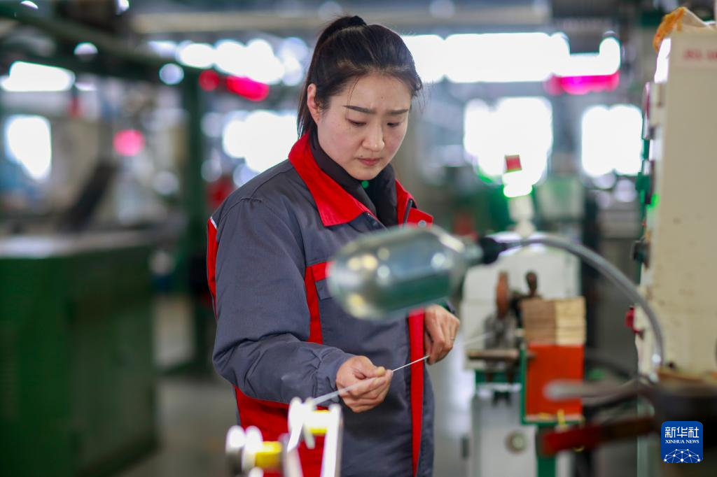 12月10日,在位于河南省商丘市夏邑县会亭镇的河南淮海精诚工业科技有限公司,工人在检测汽车配件。