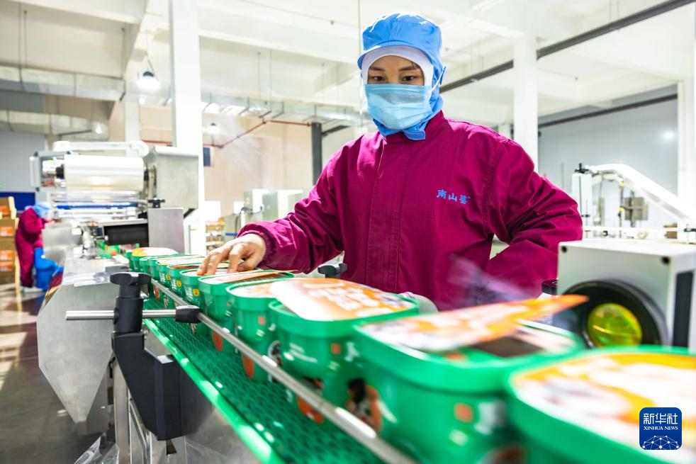 12月12日,工作人员在贵州省安顺市西秀区南山婆食品生态产业园生产酸汤火锅底料。