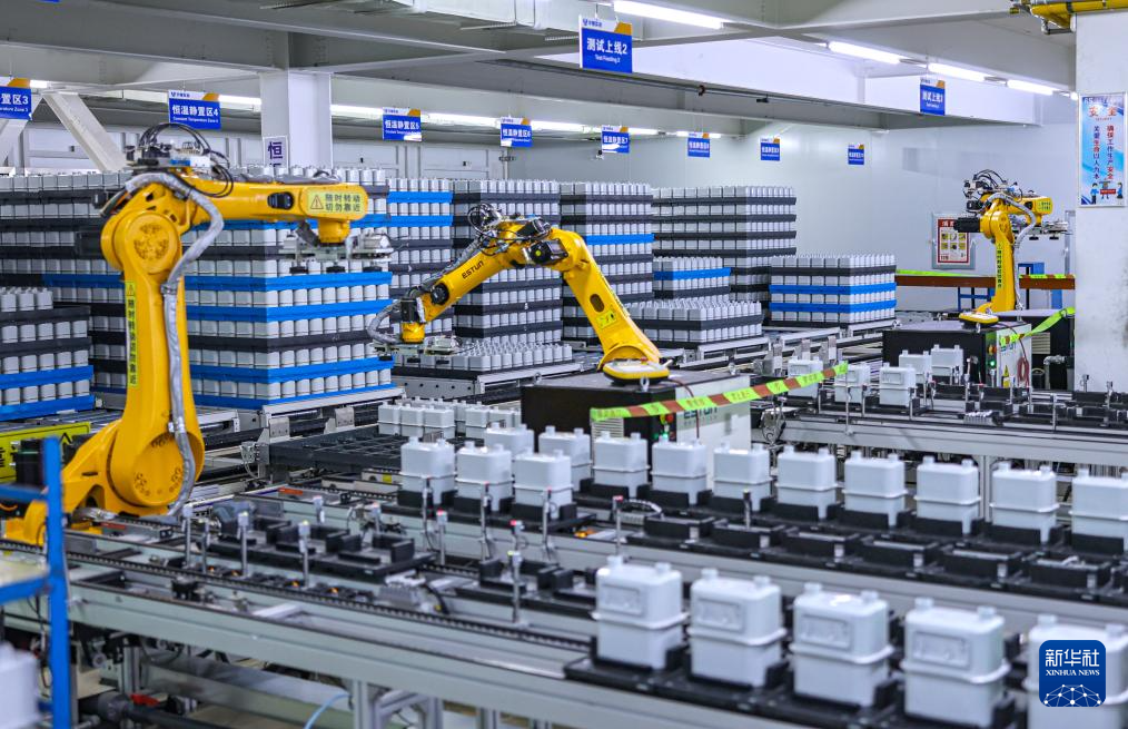 12月12日,在山东省荣成市一家燃气计量仪表制造企业的智能化生产车间内,智能机器人在进行生产作业。
