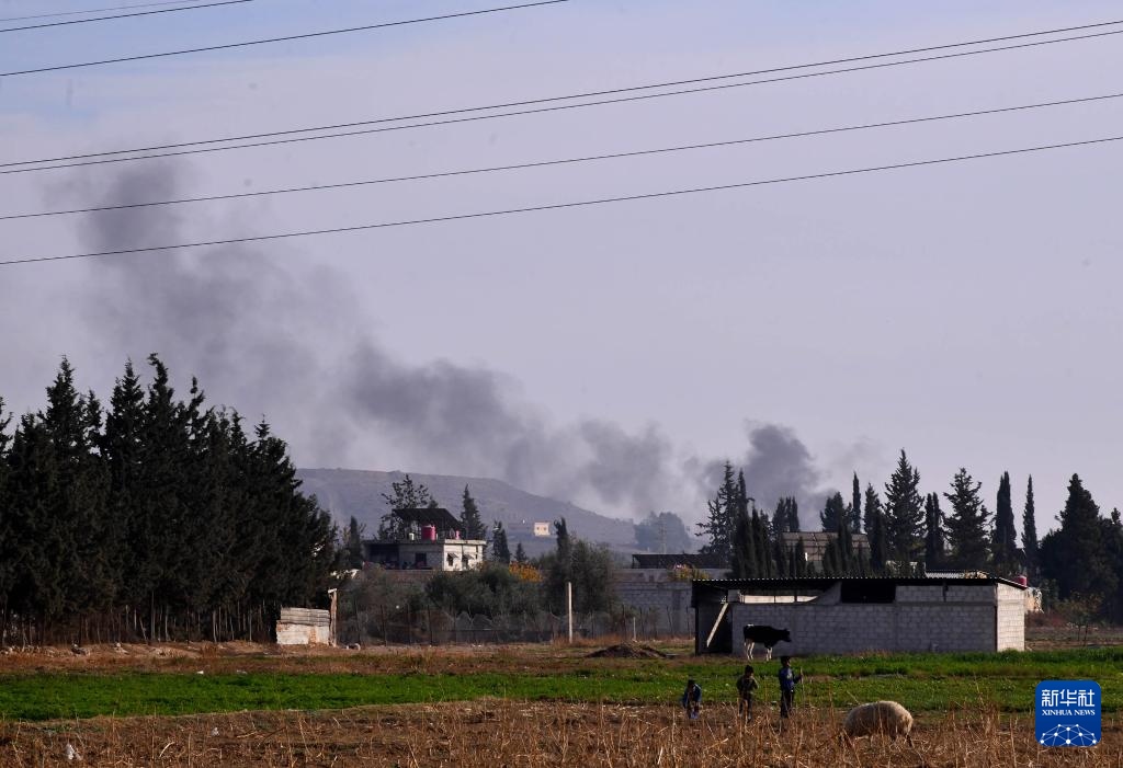 这是12月12日在叙利亚大马士革市郊拍摄的以军空袭后冒出的浓烟。