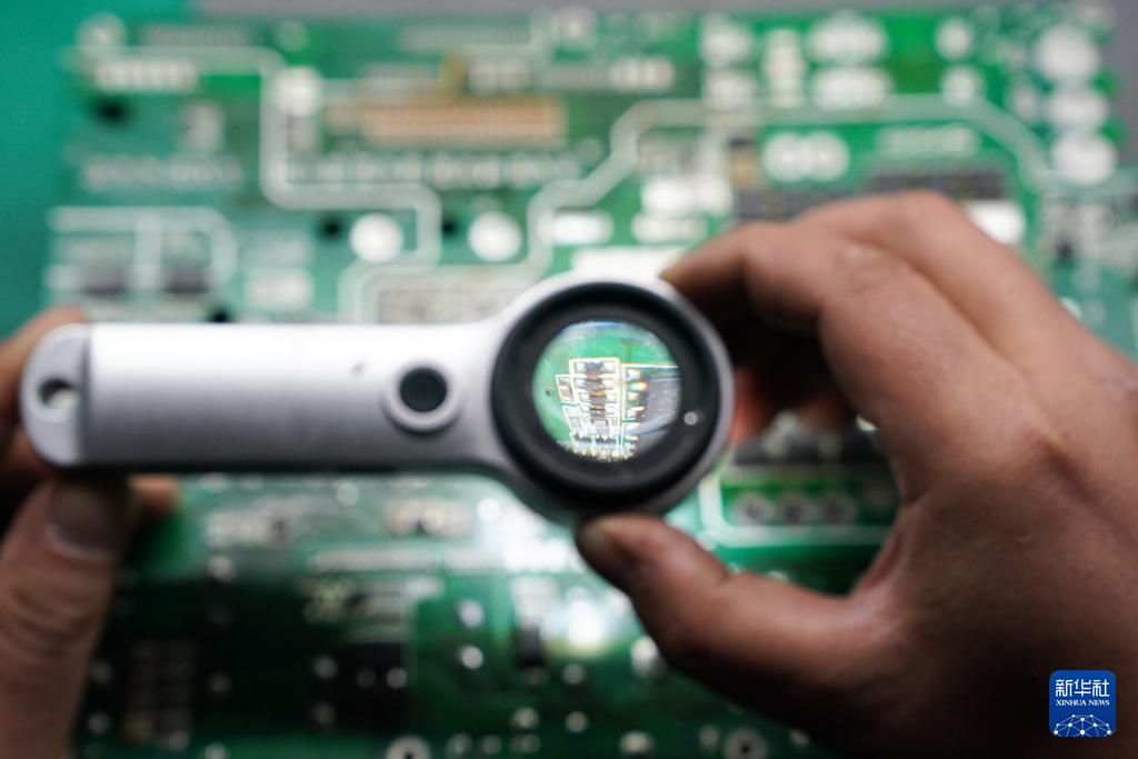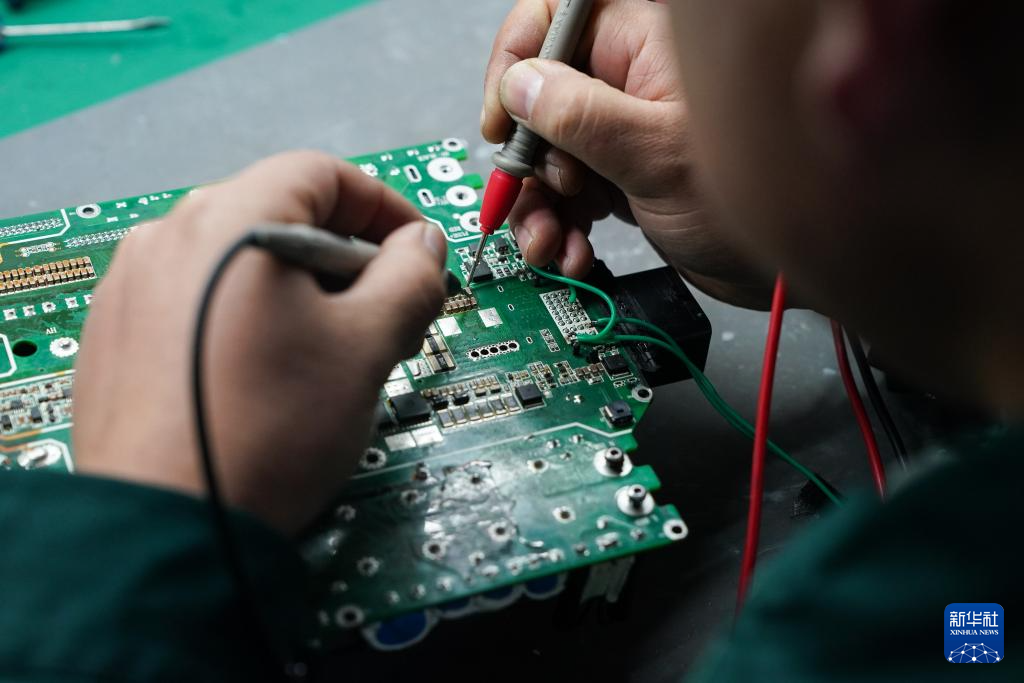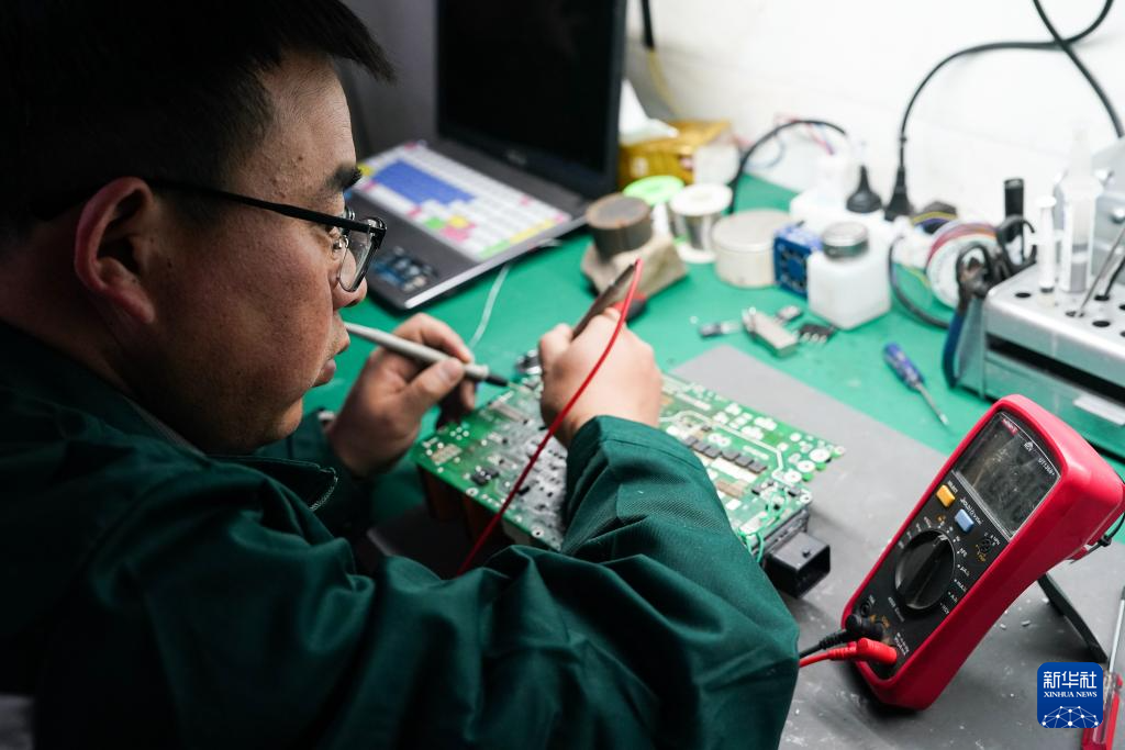 12月9日,赵飞在合肥荣创汽车服务有限公司修理新能源汽车电路板。