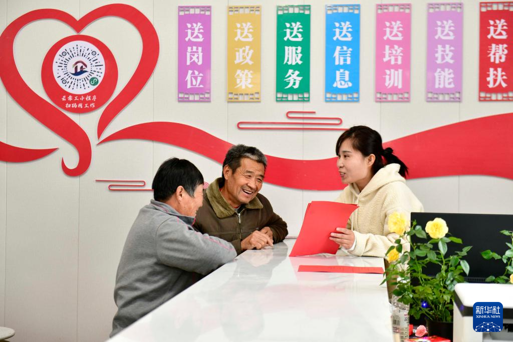 12月13日,在惠民县李庄镇零工驿站,工作人员向群众介绍岗位及薪酬情况。