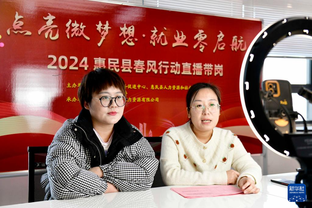 12月13日,在惠民县孙武街道,工作人员在直播带岗。
