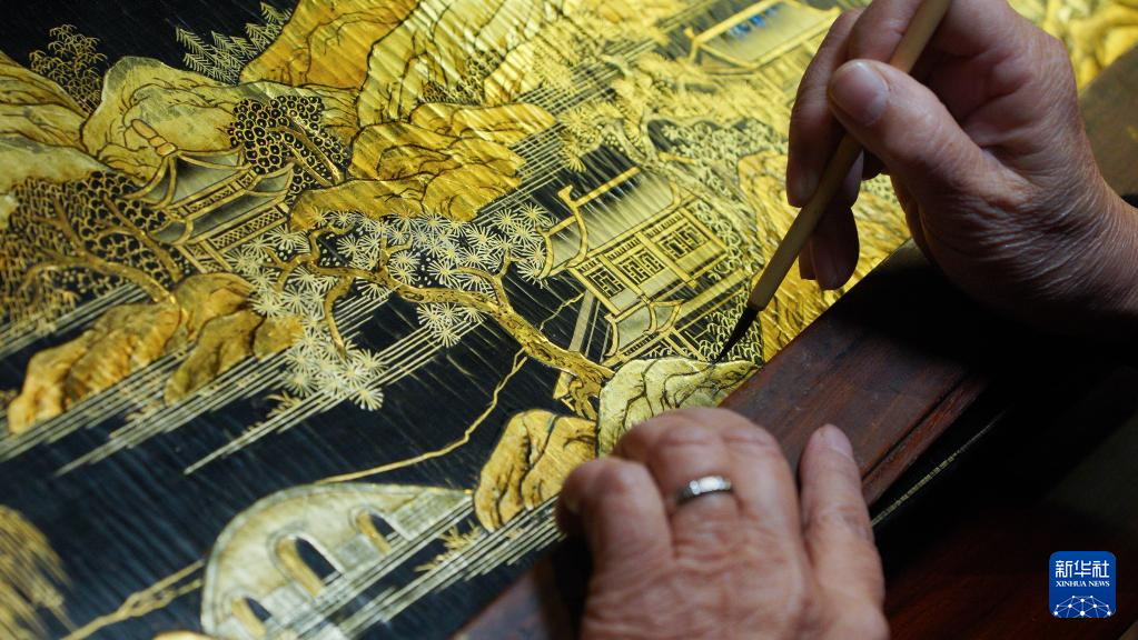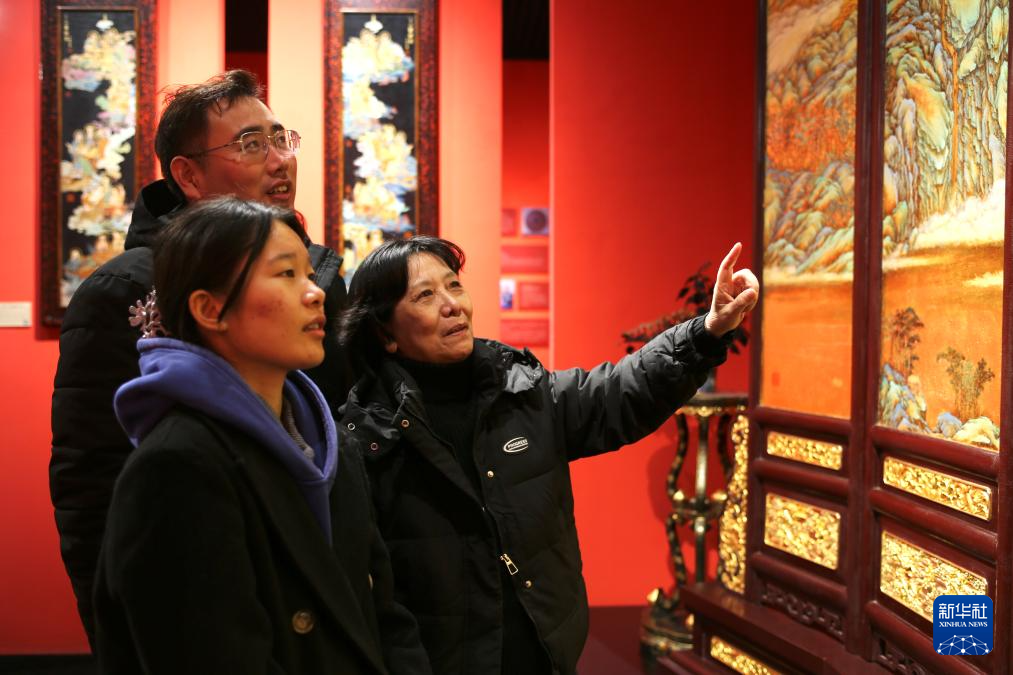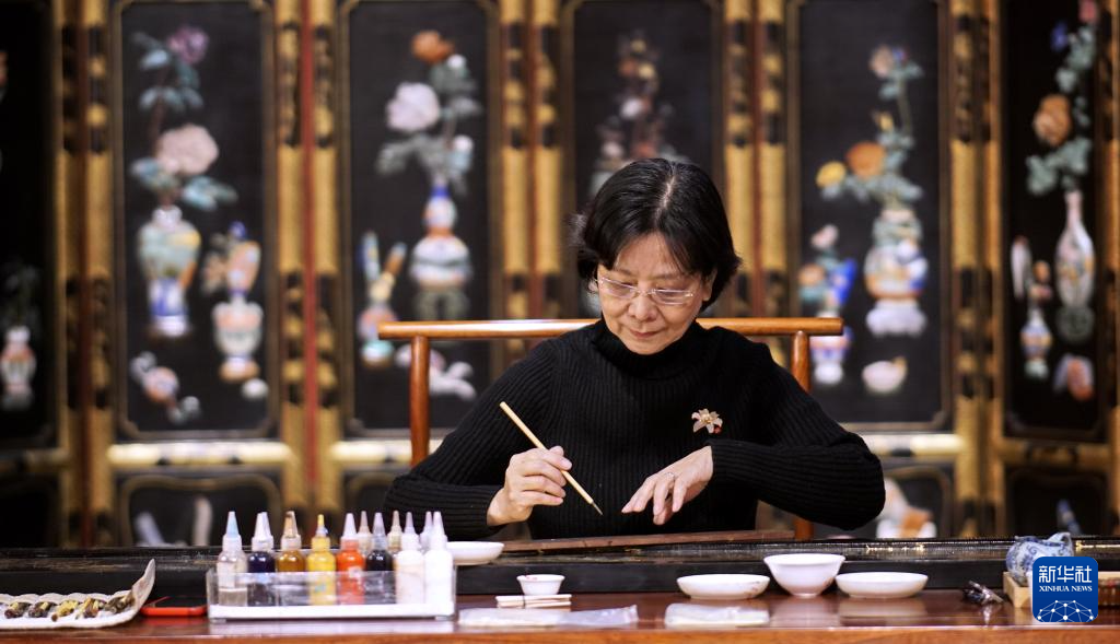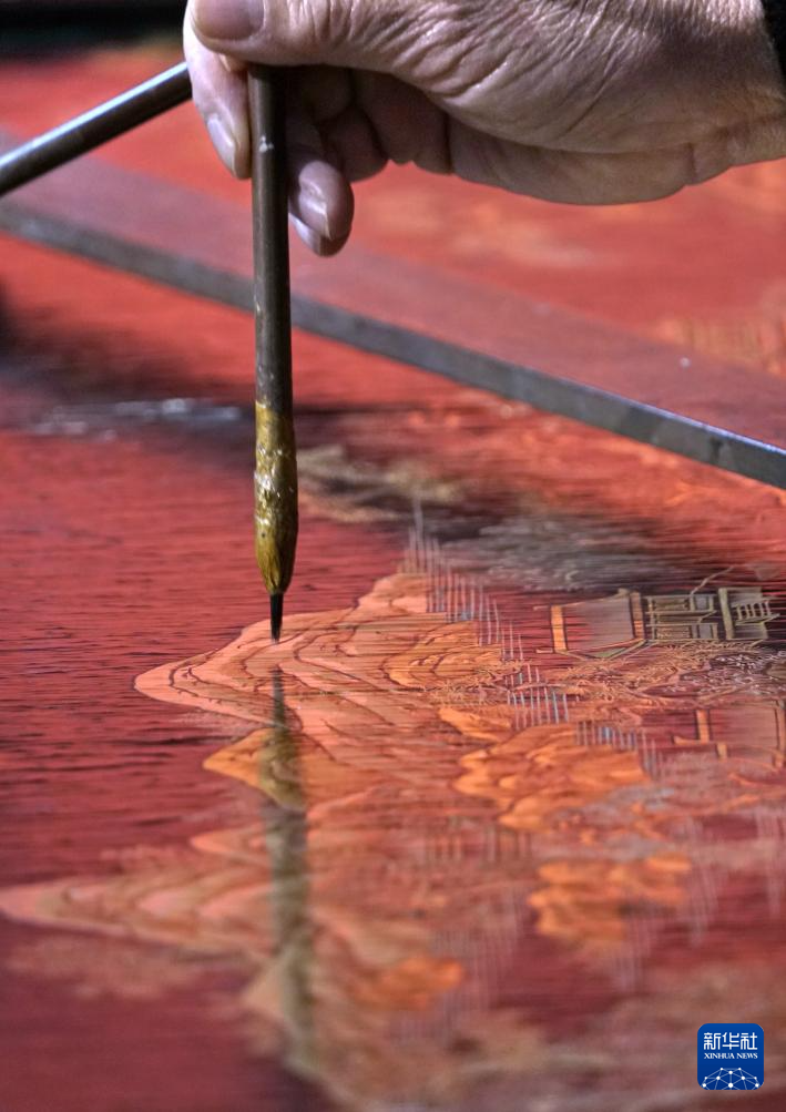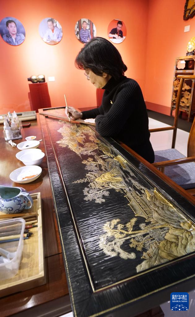 胡昕在工作室内创作金漆镶嵌作品(12月10日摄)。新华社记者 齐芷玥 摄pagebreak