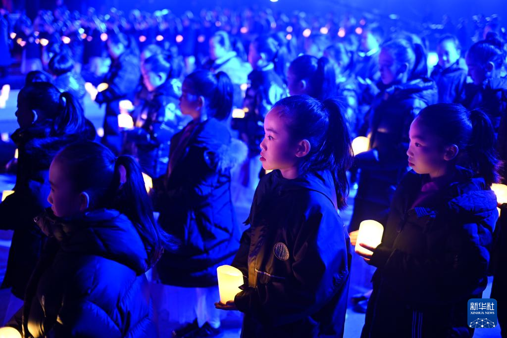 12月13日,小朋友手持蜡烛参加活动。