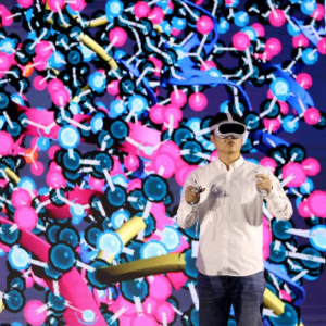 12月12日,在英国伦敦,一名男子参加智慧教育典型应用场景展示活动。