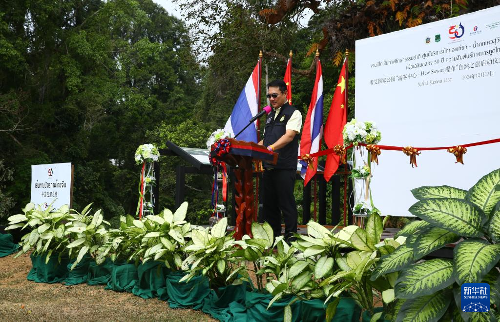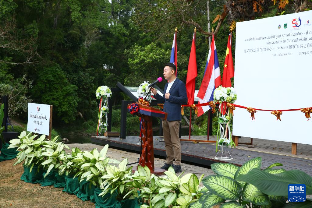 12月13日,在泰国呵叻府考艾国家公园,泰国自然资源与环境部部长助理那拉巴·胶通在启用仪式上致辞。