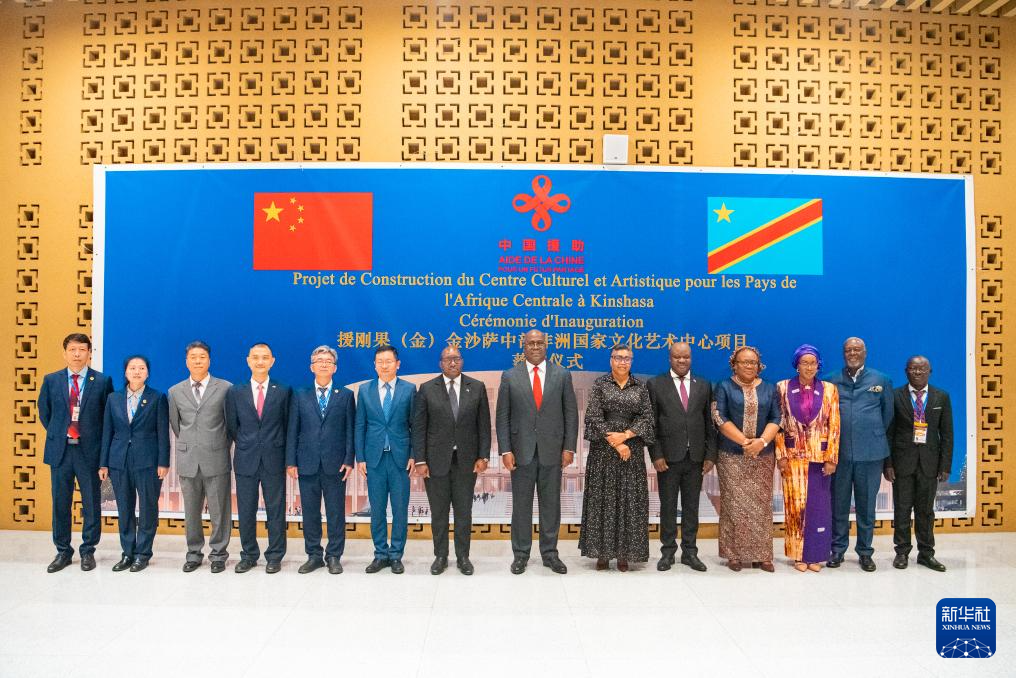 12月14日,嘉宾在刚果(金)首都金沙萨举行的金沙萨中部非洲文化艺术中心落成典礼上合影。