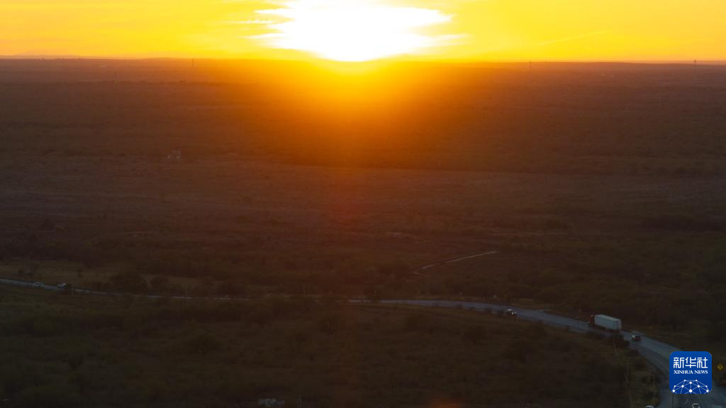 12月11日,车辆行驶在墨西哥边境城市雷诺萨附近的公路上(无人机照片)。
