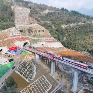 12月15日拍摄的渝厦高铁重庆东至黔江段武隆区白马山隧道出口施工现场。