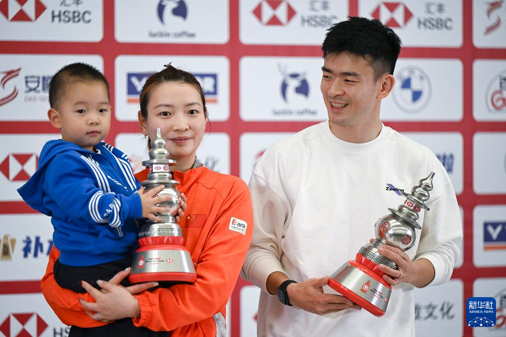 12月15日,郑思维(右)、黄雅琼(中)和郑思维的儿子在赛后新闻发布会上。
