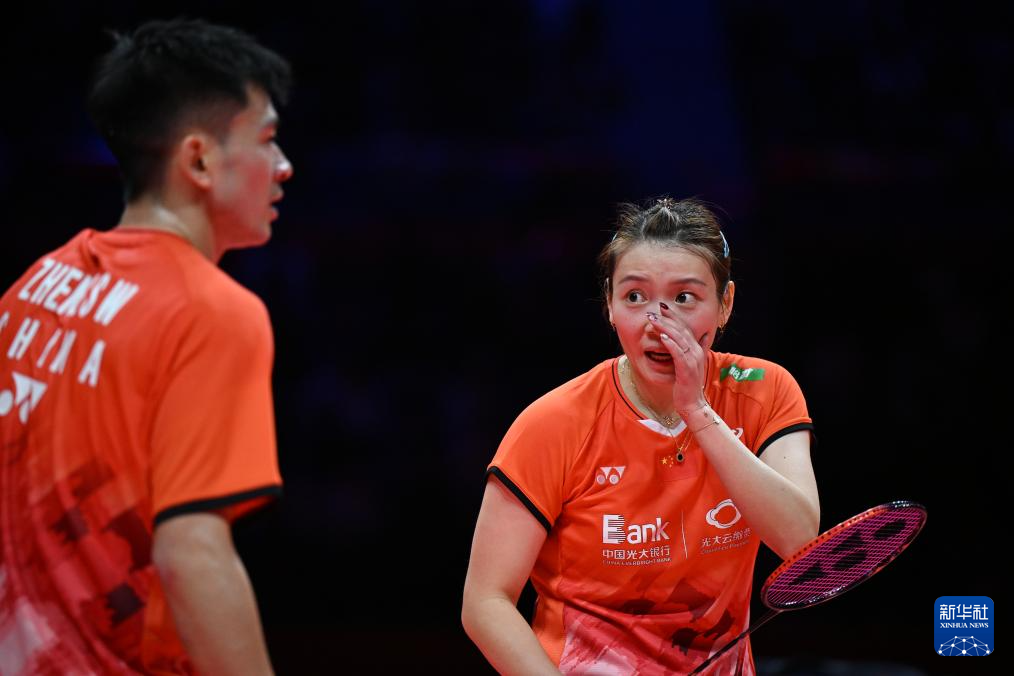 12月15日,郑思维/黄雅琼(右)在比赛中交流。
