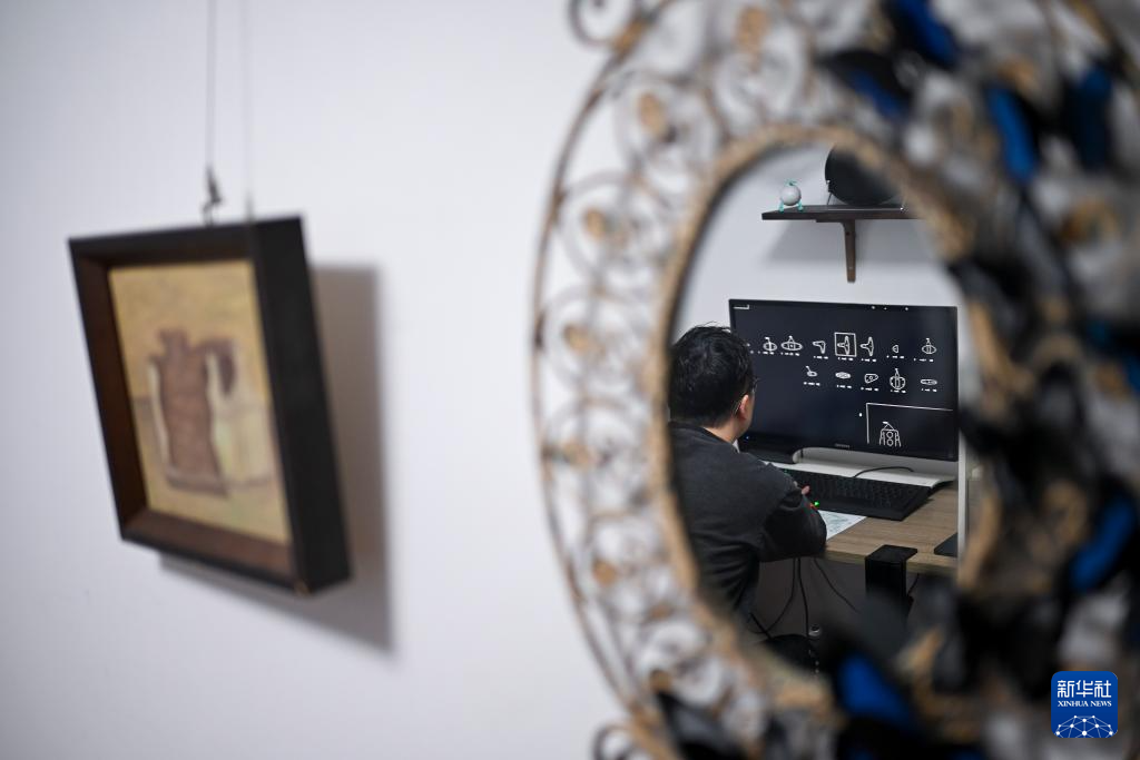 12月13日,在位于深圳市龙岗区大芬油画村的工作室,陈剑华在电脑上绘制飞机图纸。新华社记者 毛思倩 摄