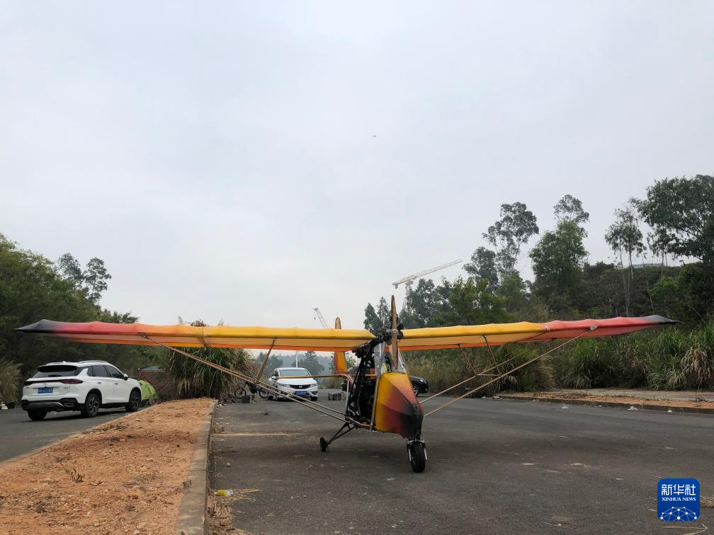 在好友的帮助下,陈剑华将飞机从工作室搬到测试场。坐进驾驶舱,加油、推杆、拉升……经过一段滑行,飞机的轮子逐渐离开地面,并开始贴地飞行。“虽然只飞了很短的距离,但飞起来那一刻心里真的无比激动,我成功了!”陈剑华说。