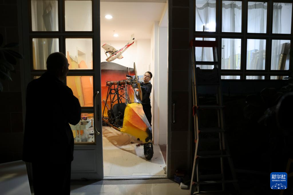 12月13日,在位于深圳市龙岗区大芬油画村的工作室,陈剑华在为自己制造的飞机安装零件。新华社记者 毛思倩 摄