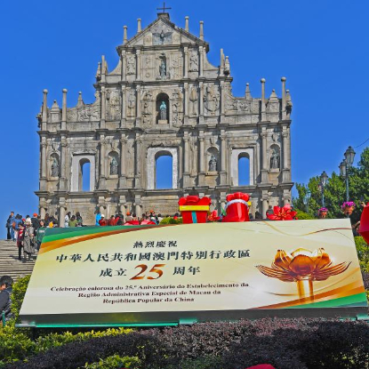 回归祖国25周年前夕,澳门街头装扮一新,洋溢着喜庆气氛。