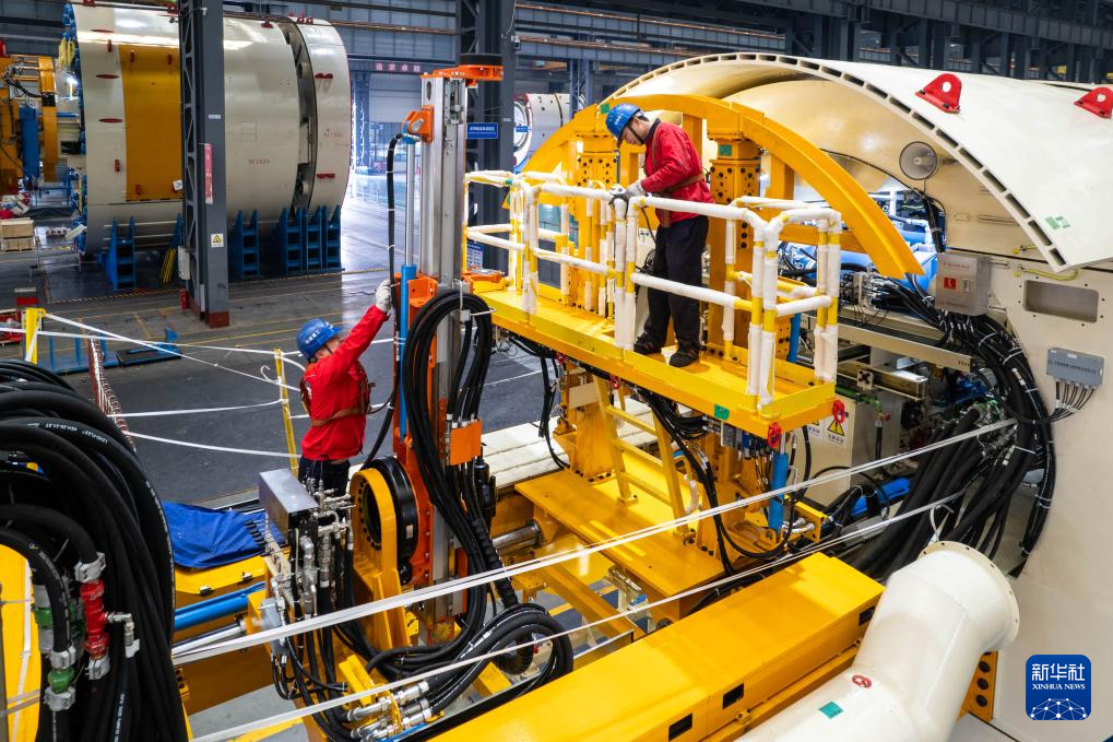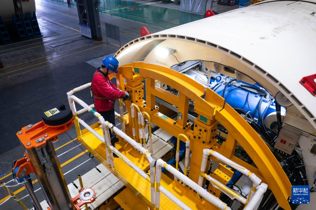 12月18日,工人在铁建重工长沙第二产业园调试“中国有色二号”掘进机。