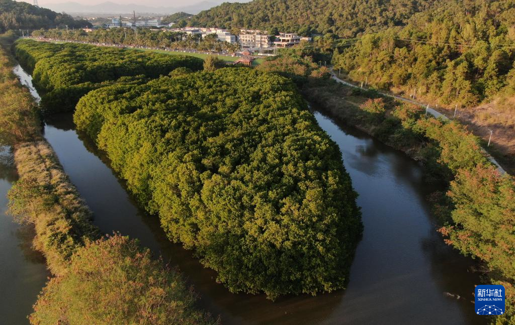 这是12月18日拍摄的广东台山市红树林保护与修复建设项目汶村段(无人机照片)。