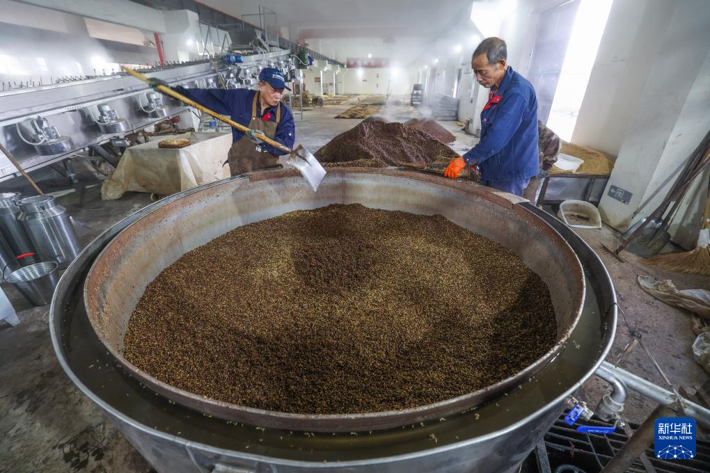 冬日里,浙江省绍兴市诸暨市同山镇酒香四溢,当地沿用传统工艺摊晾拌曲、做焐、发酵,进入了最忙碌的酿酒季节。