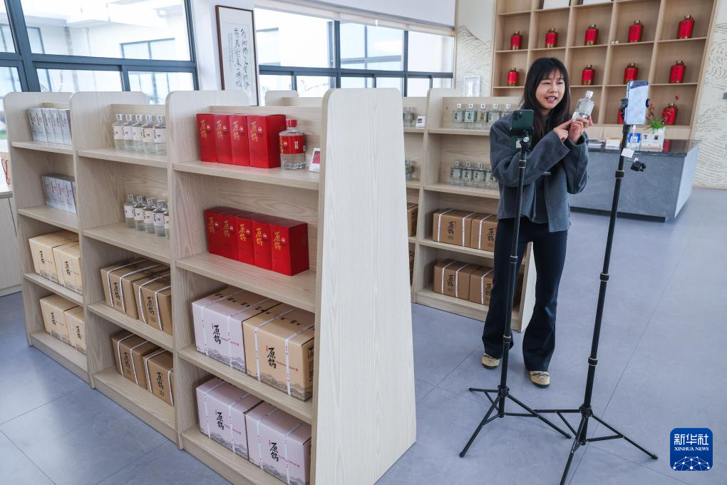 12月19日,在同山镇的同山烧共富工坊展厅,工作人员在进行直播带货。