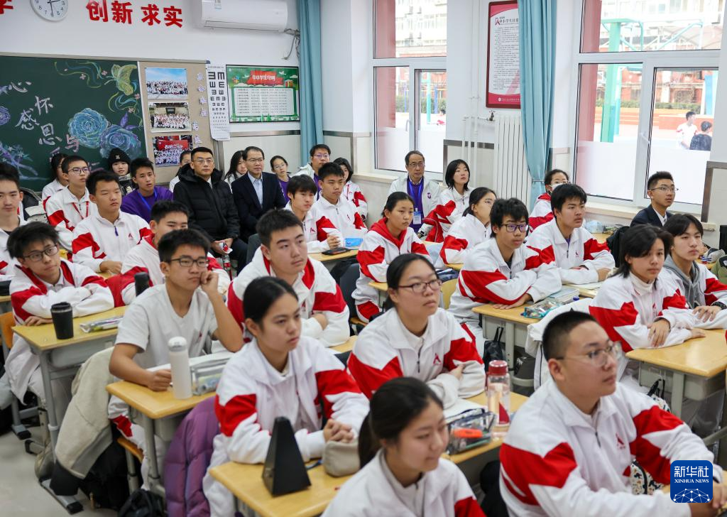 12月19日,香港第二届“国家安全教育参访团”的成员和人大附中分校的学生一起在课堂学习。