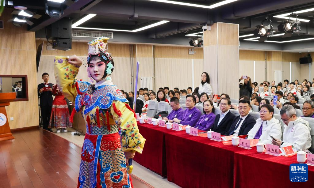 12月19日,在艺术展示环节,一名人大附中分校的学生在表演京剧。