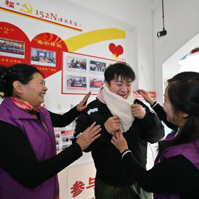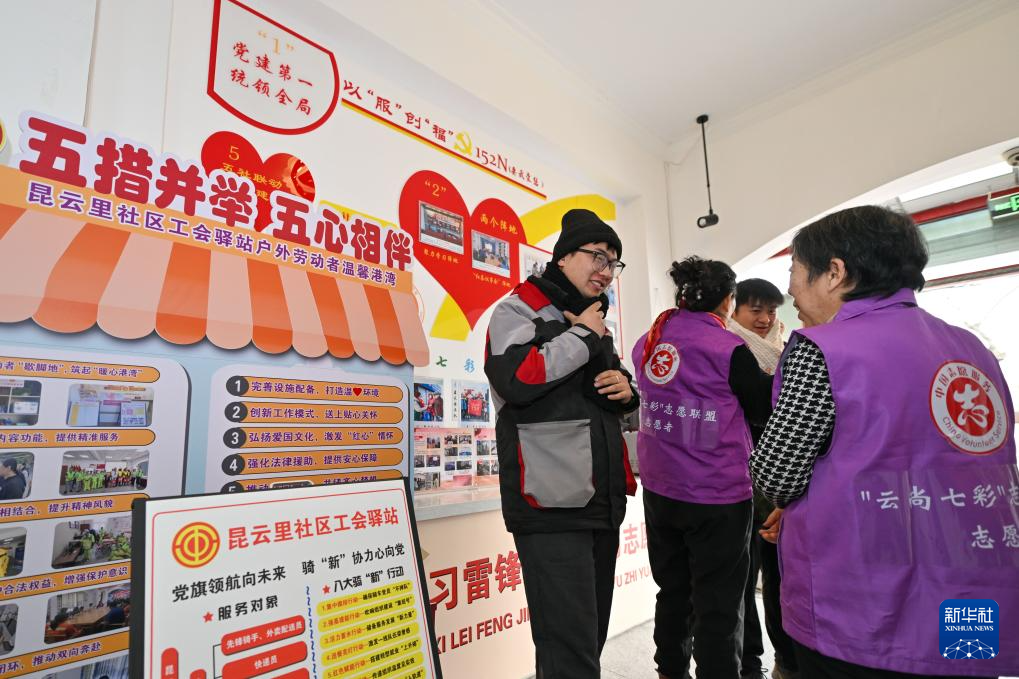 当日,天津市河北区望海楼街道昆云里社区发挥社区志愿服务积极作用,依托工会驿站,组织由社区志愿者组成的爱心针织队,为新就业群体等户外劳动者编织暖心围脖,传递社区居民对他们的关心关爱。