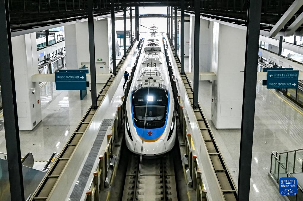 12月20日,试运行的市域线机场联络线列车驶入上海虹桥2号航站楼站。