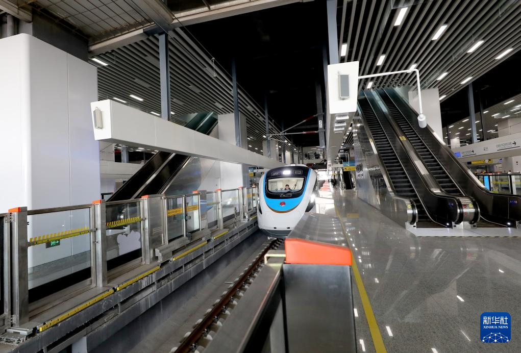 12月20日,一列试运行列车驶入市域线机场联络线虹桥2号航站楼站。