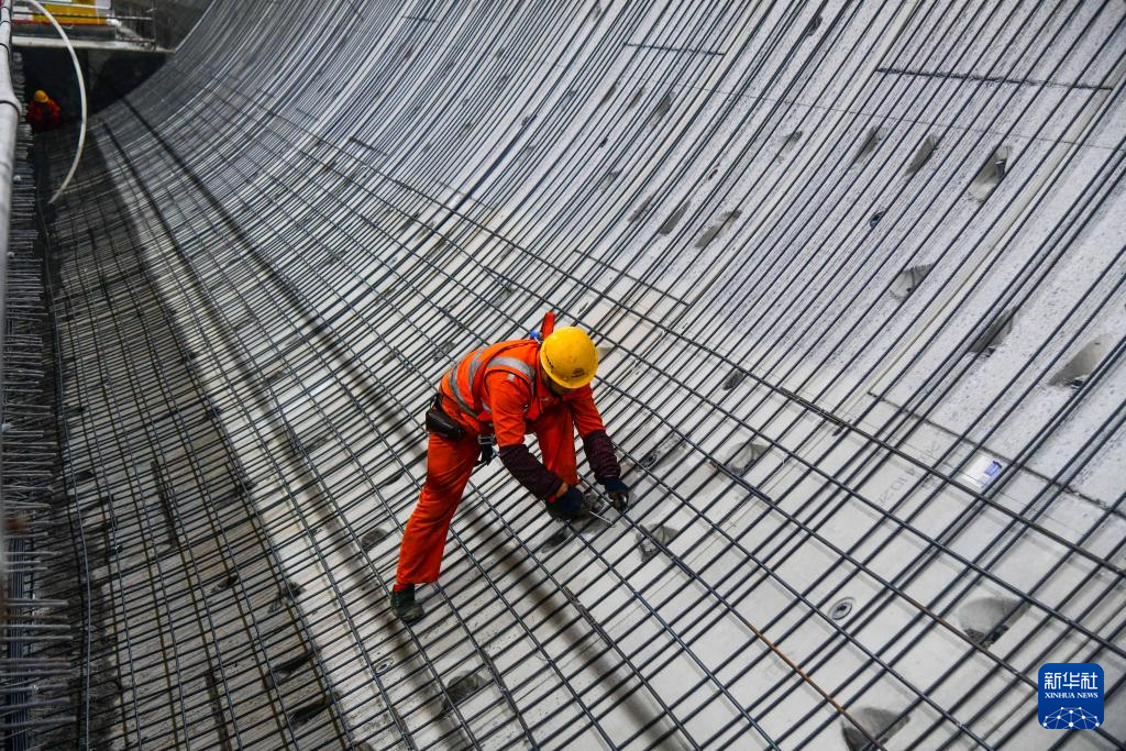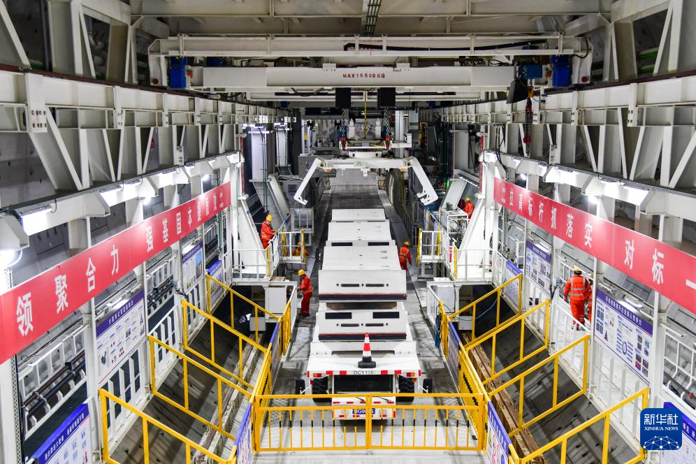 12月20日,中铁十四局建设者在黄岗路穿黄隧道内施工作业。