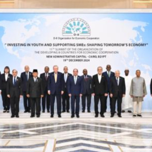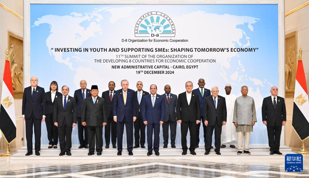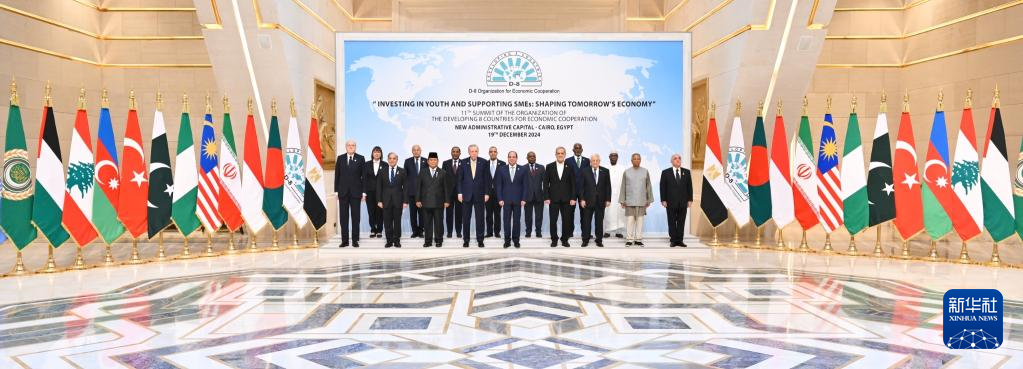 12月19日,与会者在埃及新行政首都举行的第11届发展中国家八国集团峰会上合影。