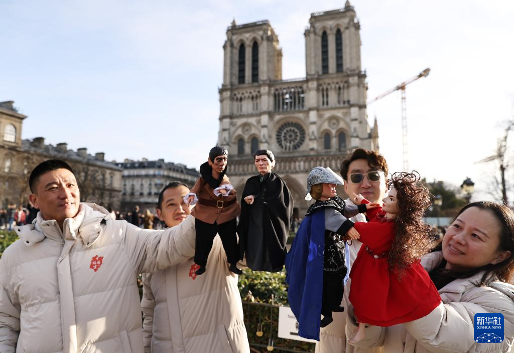 12月15日,中国福建展演团在重新开放的法国巴黎圣母院前举行快闪活动,在熙攘的游客群中演绎布袋木偶戏《巴黎圣母院》。