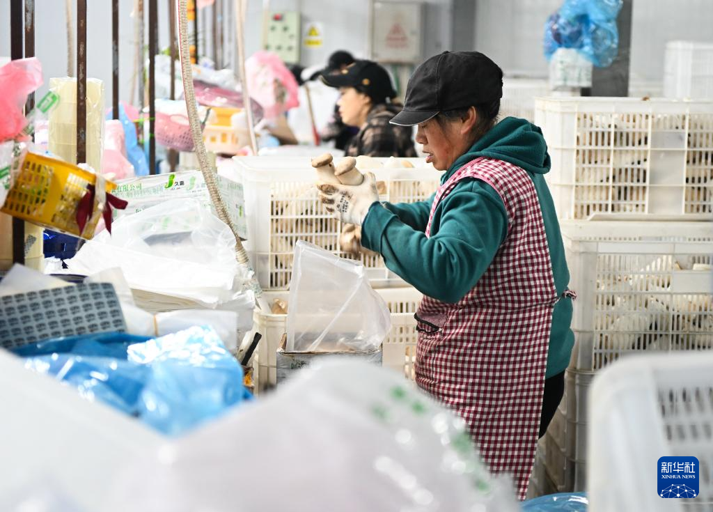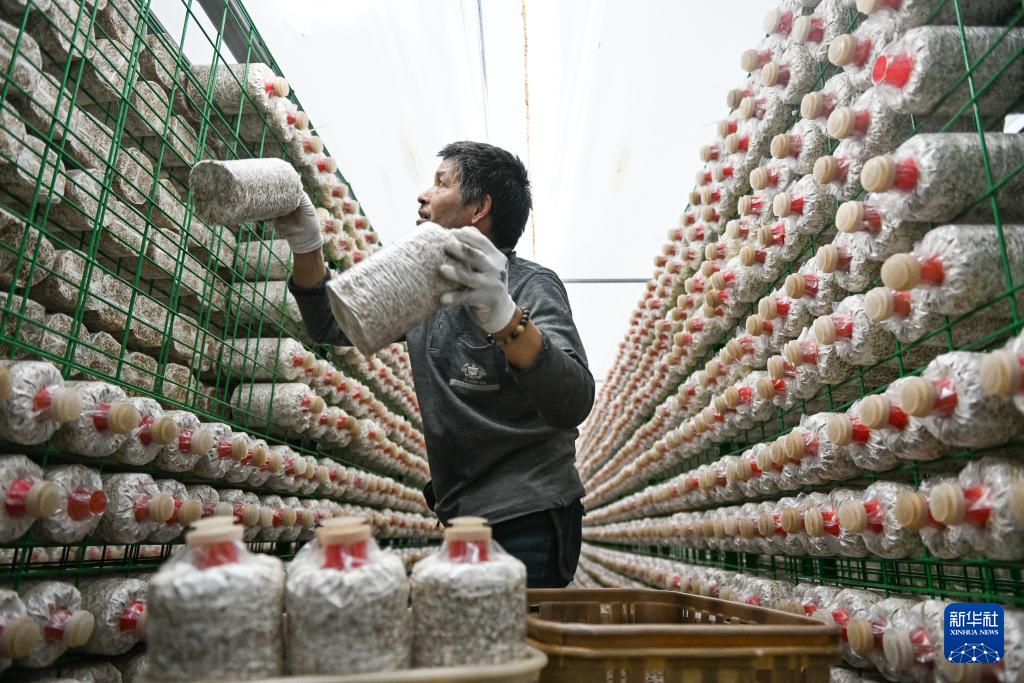 12月21日,工人在盐城市大丰区久禾生物科技发展有限公司育菇房忙碌。