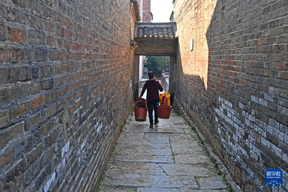 村民走在金秀县桐木镇那安村龙腾屯的古巷中(12月19日摄)。