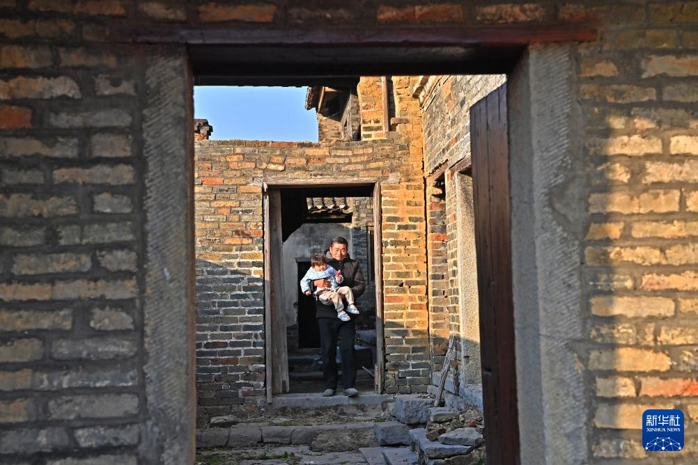村民从金秀县桐木镇那安村龙腾屯一座古宅里走出(12月19日摄)。