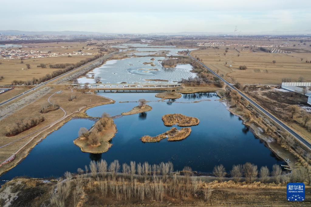 这是12月20日拍摄的流经呼和浩特市区的小黑河(无人机照片)。